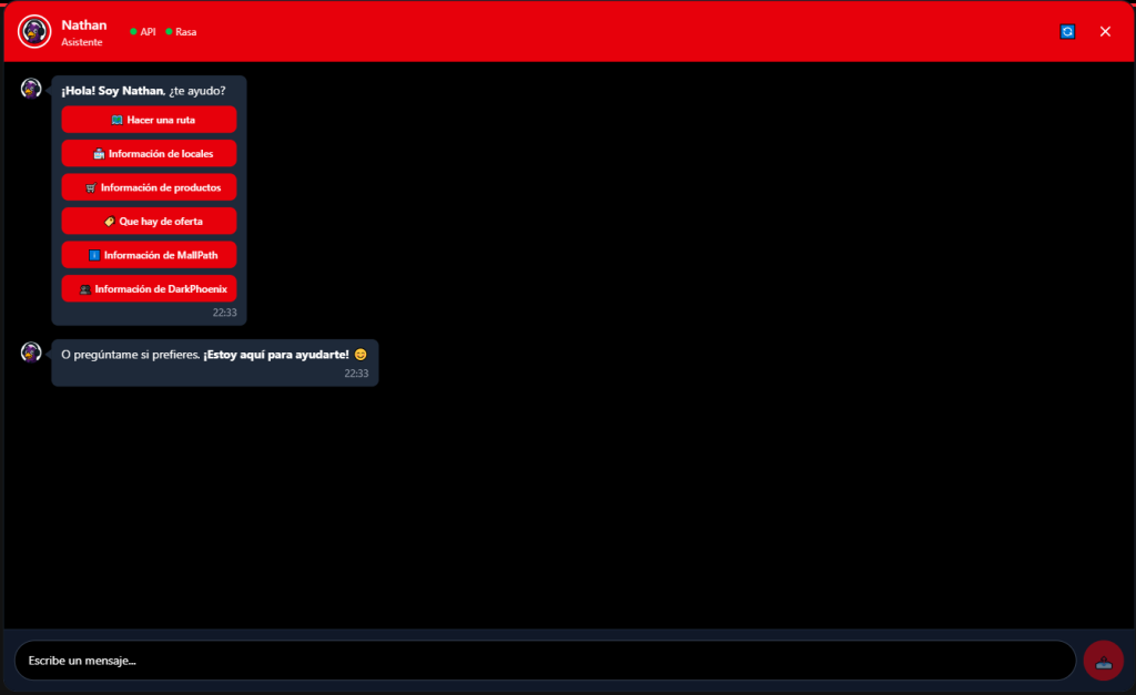 Nathan no es simplemente un chatbot, sino una de las piezas centrales de MallPath. Su tono cercano, su diseño simpático y su capacidad para ayudarte en casi todo hacen que moverse por el centro comercial sea mucho más sencillo.